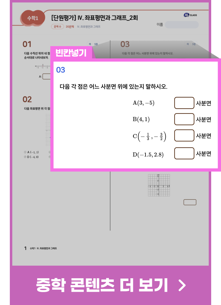 단원별 평가 문항을 함께 완성해가는